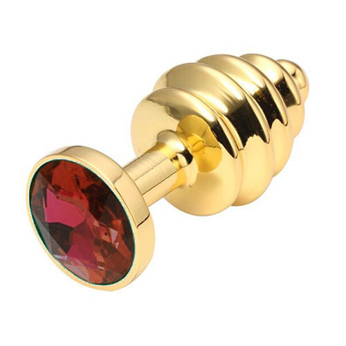 Анальная ребристая пробка с кристаллом "Gold - Red" (СКИДКА!)