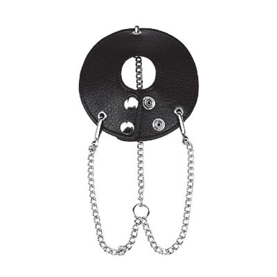 Кольцо в виде парашюта позволяет оттянуть яички вниз, тем самым усиливая приятные ощущения во время секса и обостряя оргазм. Разделитель мошонки от американского бренда Blue Line. Сделано из эко-кожи с металлической фурнитурой. Цепочки выдерживают нагрузки до 1,3 кг. Диаметр регулируется от 2,5 до 3 см.