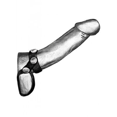 Сделано из эко-кожи с металлической фурнитурой. Эрекционное кольцо-утяжка для члена и мошонки от российского бренда Джага-Джага. Размер регулируется с помощью заклепок. Утяжка помогает поддержать эрекцию и усилить приятные ощущения во время секса или мастурбации.