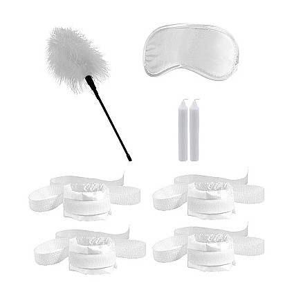 Комплект идеально подходит для начинающих поклонников БДСМ. Комплект для эротического вечера от голландского бренда Shots Media: маска на глаза, наручники и наножники с возможностью фиксации на кровати, пуховка и две свечи. Использовать все предметы одновременно или по отдельности? Выбор за вами. Не подавляйте свои желания, пусть ночь станет яркой и насыщенной!