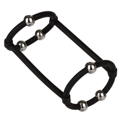 Помогает поддержать эрекцию и усилить приятные ощущения во время секса или мастурбации. Двойное эрекционное кольцо от американского бренда California Exotics. Сделано из силикона с металлическими бусинами. Не содержит фталатов и безопасно для чувствительной кожи.