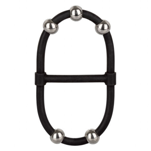 Помогает поддержать эрекцию и усилить приятные ощущения во время секса или мастурбации. Двойное эрекционное кольцо от американского бренда California Exotics. Сделано из силикона с металлическими бусинами. Не содержит фталатов и безопасно для чувствительной кожи.